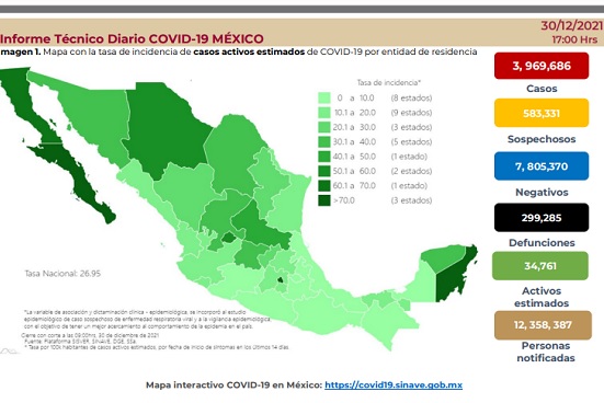 Los casos activos estimados, es decir, con capacidad de transmisión, aumentaron a 34 mil 761, es decir, casi siete mil más que los reportados este miércoles. Saldo que prácticamente se duplica si se compara con los contagios activos reportados hace una semana.