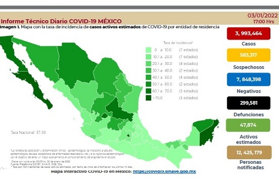 Aunque en las últimas 24 horas el número de casos confirmados por laboratorio creció en 2 mil 877, sólo se sumaron 37 fallecimientos, la curva epidémica mantiene su tendencia al alza con 63 por ciento en la semana 50, que corresponde al periodo del 19 al 25 de diciembre, en comparación con la semana previa.