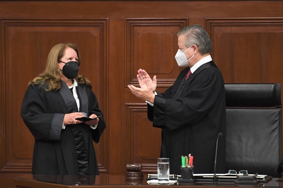 En Sesión solemne del Pleno de la Suprema Corte de Justicia de la Nación (SCJN), el Ministro Arturo Zaldívar, Presidente del Alto Tribunal y del Consejo de la Judicatura Federal (CJF), impuso la toga magisterial e hizo entrega de la credencial y del distintivo correspondiente a la nueva Ministra, Loretta Ortiz Ahlf, con lo que el Pleno del Alto Tribunal contará por primera vez, desde la Reforma Constitucional de 1994 con la participación de cuatro Ministras.