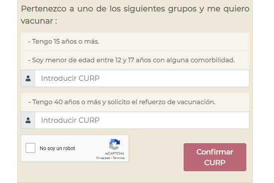 En el portal Mi Vacuna, a la que puedes acceder dando click aquí, aparece ya la opción de registro para las personas de más de 40 años. También aparece la opción para jóvenes mayores de 15 años y para adolescentes de entre 12 y 17 años con alguna comorbilidad.