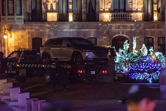 Una camioneta de reciente modelo fue abandonada la madrugada de este jueves con seis personas asesinadas en su interior debajo del árbol de Navidad instalado en Plaza de Armas frente al palacio de gobierno de Zacatecas.