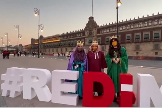 Vestidas de Reinas Magas, representantes de la Red por los Derechos de la Infancia en México (REDIM), llevaron a Palacio Nacional el Balance Anual 2021: “Discriminación y violencia contra la niñez durante la pandemia”, elaborado por esta coalición de organizaciones.