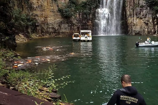 El sábado al mediodía, un gran fragmento rocoso se desprendió de un barranco y cayó, perpendicular, encima de cuatro lanchas que paseaban por el lago, en una región de barrancos y cascadas del municipio de Capitolio.