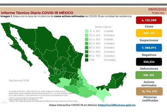 La dependencia informó que en las pasadas 24 horas se confirmaron 11 mil 599 casos de la enfermedad, con lo que el registro de afectados, corroborado con prueba de laboratorio subió a 4 millones 125 mil 388.