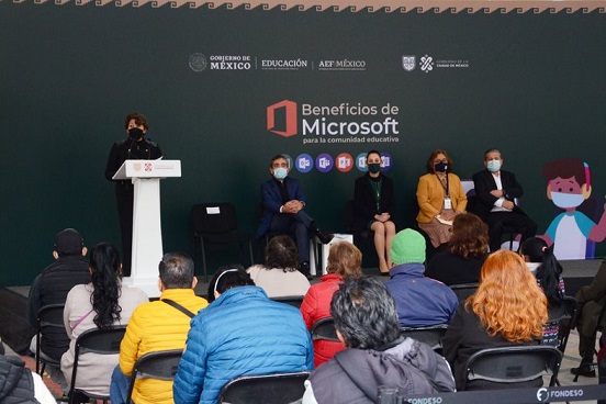 La mandataria local indicó que, gracias a la colaboración entre la Secretaría de Educación Pública (SEP), la Autoridad Educativa Federal en la Ciudad de México (AEFCM) y Microsoft, los 1.2 millones de niños y niñas de educación básica tienen de manera gratuita acceso a los programas de esta empresa internacional, mediante el uso del correo electrónico que se abrió durante el proceso de educación a distancia, así como 90 mil maestras y maestros de la capital.