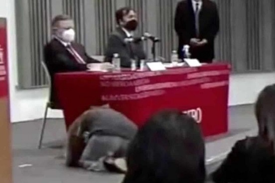 Mientras la mujer se arrodillaba ante el presidente de la SCJN, el resto de su familia gritaba «Justicia, libertad para Alejandra». Antes de ponerse de pie, expresó: «Si fuera tu mamá, ¿qué harías? Te lo suplico, esto no puede seguir, estoy aterrada de vivir en México, de criar a mis hijos aquí, porque no existen las leyes ni la justicia».