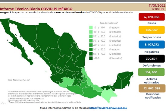 En tanto, 300 mil 574 personas han fallecido como consecuencia de esta enfermedad y de ellas, 162 fueron reportadas en las últimas 24 horas.