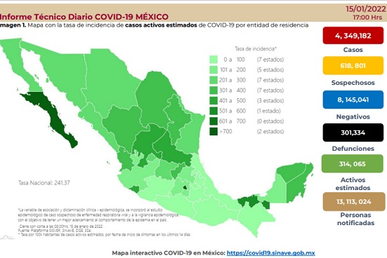 El país ha acumulado 4 millones 349 mil 182 casos y, con 227 muertes sumadas en 24 horas, ha registrado 301 mil 334 defunciones a causa de la enfermedad.