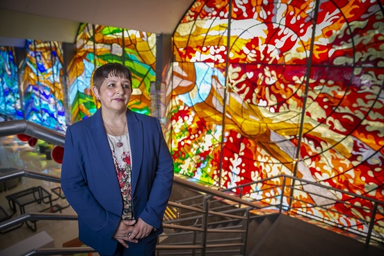 La hija del reconocido artista mexiquense detalló que en este vitral se pueden apreciar 18 tonalidades diferentes de color a lo largo de los cuatro arcos que conforman la biblioteca de la Facultad de Ingeniería y que tienen una extensión de más de 300 metros cuadrados, por lo cual ha sido considerado como el segundo vitral no religioso más grande de América Latina.