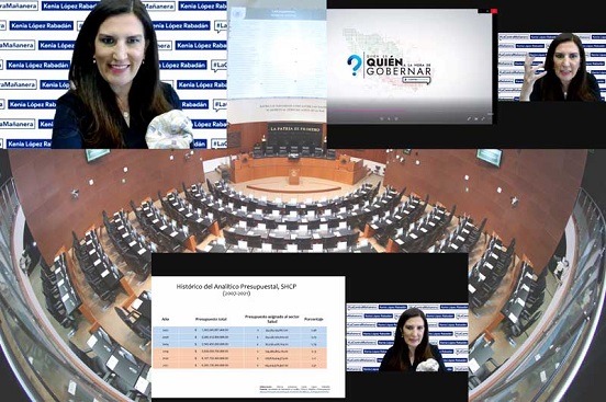 López Rabadán presentó una tabla en la que se muestra el presupuesto asignado por el PAN en 2007, 2008 y 2009, así como por Morena en sus primeros tres años 2019, 2020 y 2021, demostrando que en el gobierno panista se invirtió un porcentaje mayor del total del Presupuesto Egresos de la Federación.