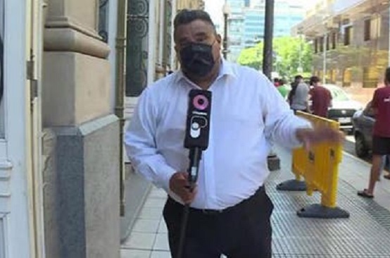 Se trata de Carlos Ferrara, un periodista argentino que se encontraba transmitiendo desde un centro de pruebas covid y repentinamente cayó desmayado.