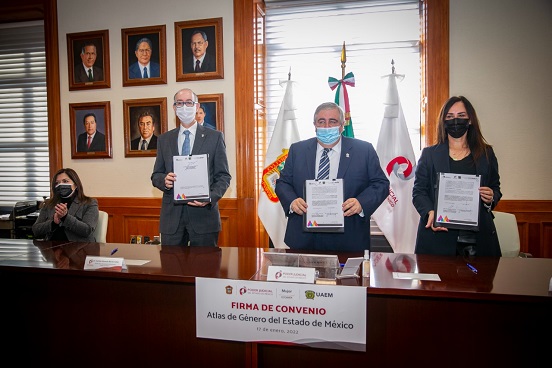 Con el propósito de contar con un diagnóstico preciso sobre temáticas de género que considere variables económicas, socioculturales, demográficas, entre otras, y facilite la toma de decisiones en la materia, la Universidad Autónoma del Estado de México (UAEM), el Poder Judicial del Estado de México y la Secretaria de la Mujer firmaron el convenio de colaboración para la elaboración del Atlas de Género del Estado de México.