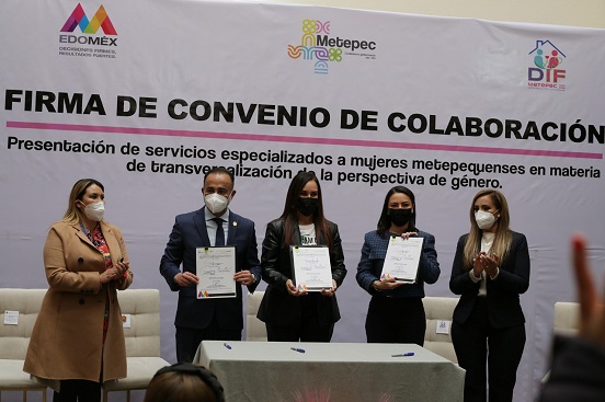 Lo anterior, se dio en el marco de la Firma de Convenio de Colaboración para la Presentación de Servicios Especializados a Mujeres Metepequenses en Materia de Transversalización de la Perspectiva de Género.