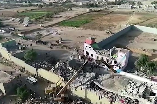 Los rebeldes publicaron un vídeo en el que se mostraba el ataque a la prisión, con edificios destruidos, socorristas sacando cuerpos de los escombros y cadáveres mutilados en las inmediaciones.
