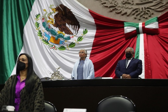 La senadora Olga María del Carmen Sánchez Cordero Dávila (Morena), en funciones de la Presidencia de la Comisión Permanente, otorgó el minuto y solicitó a todas y todos poner de pie.