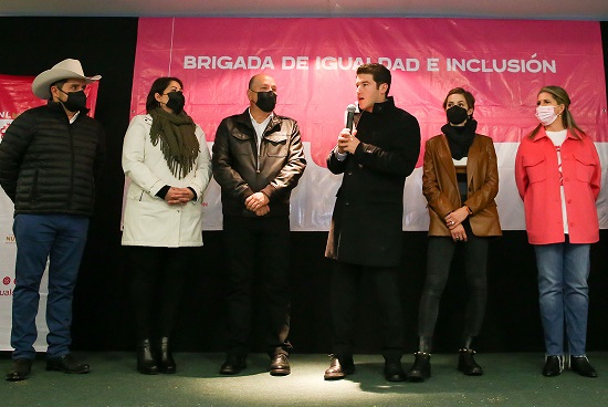 Acompañado de su esposa Mariana Rodríguez Cantú, de AMAR a Nuevo León, el Mandatario estatal supervisó en el municipio de Hualahuises una Brigada de Igualdad para todas las Personas en donde se brindó información y apoyo de programas y servicios de distintas dependencias de Gobierno e Instituciones privadas.