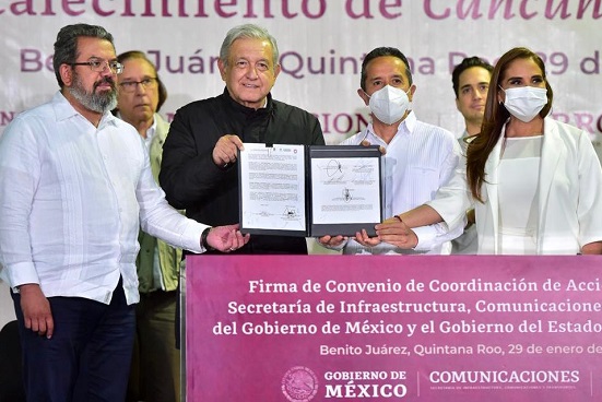 El presidente Andrés Manuel López Obrador encabezó el anuncio del programa de obras de infraestructura para el fortalecimiento de Cancún y Tulum. Se trata de una cartera de proyectos estratégicos y la creación del Parque Nacional del Jaguar.