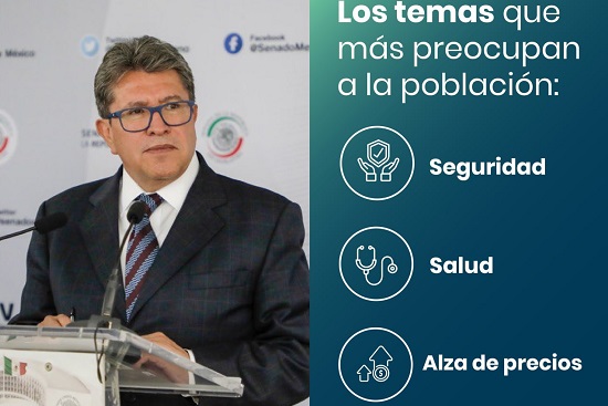 La seguridad, la salud -especialmente los efectos de la pandemia- y la inflación que afecta al mundo, son las principales preocupaciones de Morena en el Senado, por lo que diseñará una agenda legislativa que atienda estas tres demandas sociales, afirmó el senador Ricardo Monreal Ávila.