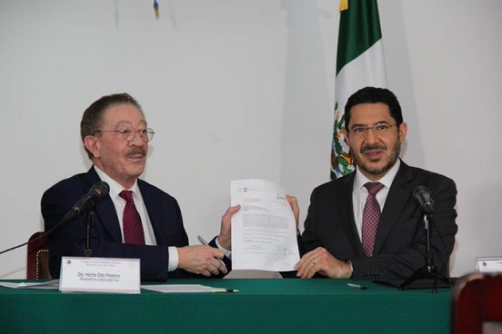 Batres Guadarrama entregó la iniciativa al presidente de la Mesa Directiva del Congreso local, Héctor Díaz Polanco, con el fin de que sea analizada y valorada por este órgano legislativo.