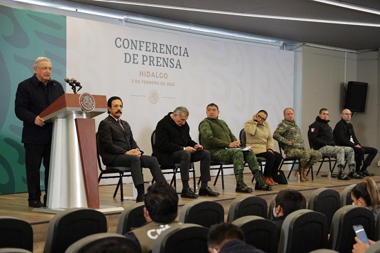El presidente Andrés Manuel López Obrador destacó los resultados de seguridad en Hidalgo, estado que registra todos los delitos a la baja.