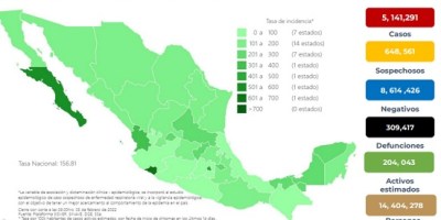 Ssa reporta 35 mil 243 nuevos casos Covid-19 y llegan a 309,417 las defunciones