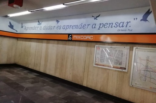 Cada vez que entró a la estación, observó que en sus paredes están escritas frases del célebre Octavio Paz, poeta y ensayista mexicano ganador del Premio Nobel de Literatura en 1990. De acuerdo con la Academia Sueca el Nobel fue entregado por su escritura apasionada y de amplios horizontes.
