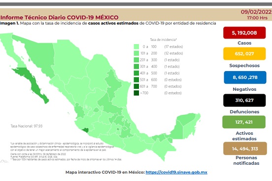 Con respecto a la aplicación de vacunas, la secretaría de Salud indicó que el martes fueron 388 mil 361 dosis. La cobertura es de 89 por ciento de personas mayores de 18 años que han recibido al menos una inyección.