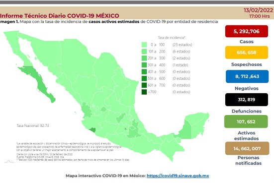 Los casos activos estimados para hoy son 107 mil 652, los cuales equivalen a 1.9 por ciento del total de personas que han tenido covid-19 en el país.