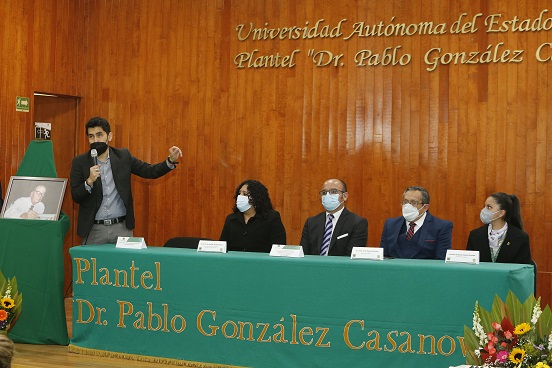 Acompañado de la encargada del despacho de la dirección del Plantel, Janette Jaimes García, el servidor universitario puntualizó que González Casanova es uno de los intelectuales mexicanos más importantes de la segunda mitad del siglo XX y de las primeras décadas de la actual centuria.