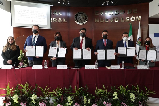 El Tribunal Electoral del Poder Judicial de la Federación (TEPJF), el Tribunal Electoral del Estado de Nuevo León (TEENL) y la Comisión Estatal Electoral (CEE) de esta entidad firmaron un Convenio de Colaboración para fortalecer la capacitación del personal de los organismos jurisdiccional y administrativo del estado, impulsar la vinculación interinstitucional para lograr una justicia digital electoral nacional, así como la institucionalización de la perspectiva de género e igualdad de derecho, entre otros temas.