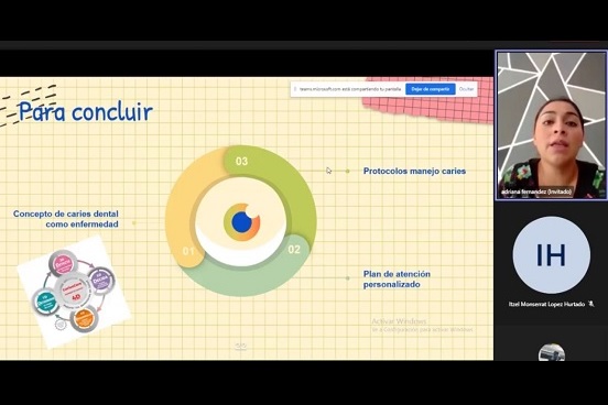 Como parte de las actividades del Programa Integral de Formación Académica de la Facultad de Odontología de la Universidad Autónoma del Estado de México (UAEMéx), Bobadilla Fernández impartió la conferencia virtual “Detección de caries en la actualidad”.