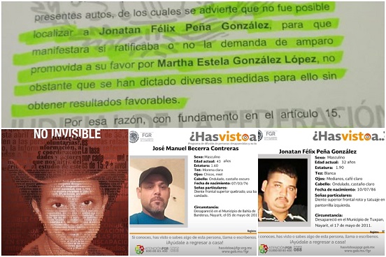 Debido a que tres jóvenes desaparecidos no se presentaron a ratificar una demanda de amparo interpuesta precisamente por su desaparición, la jueza de Distrito Laura Margarita Sepúlveda Castro, y el juez Oscar Márquez Torres, ambos de Nayarit, decidieron suspender el procedimiento.