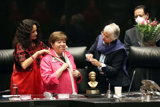 La presidenta de la Mesa Directiva, Olga Sánchez Cordero, destacó que este galardón “tiene como centro la vida y obra de dos mujeres, cuyo honor se ha instituido. Hoy, agregó, “el ser mujer se viste de gala, me congratula tener la oportunidad de otorgar, a nombre de las y los senadores, la presea Rosario Castellanos” a Elsa Cross.