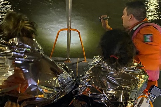 Las tres fueron subidas al bote, para proporcionarles sábanas térmicas y trasladarlas a tierra firme del lado mexicano, a fin de revisar su estado de salud ante el riesgo de hipotermia por la baja temperatura del agua.