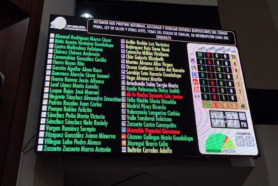 Con mayoría de votos de Morena, el Congreso de Sinaloa aprobó reformas al Código Penal estatal, a la Ley de Salud y a otras disposiciones para permitir la interrupción legal del embarazo.