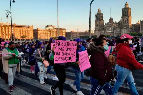 Los colectivos desplegaron mantas pancartas y caminaron alrededor de la Plaza de la Constitución lanzando consignas en la que exigieron terminar con los feminicidios y la violencia hacia la mujer.