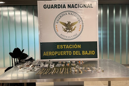 Un aproximado de 80 piezas de joyería con valor cercano a 43 millones de pesos, fueron decomisadas en el Aeropuerto Internacional del Bajío, en el estado de Guanajuato, por elementos de la Guardia Nacional (GN) y personal de la Agencia Nacional de Aduanas de México (ANAM).