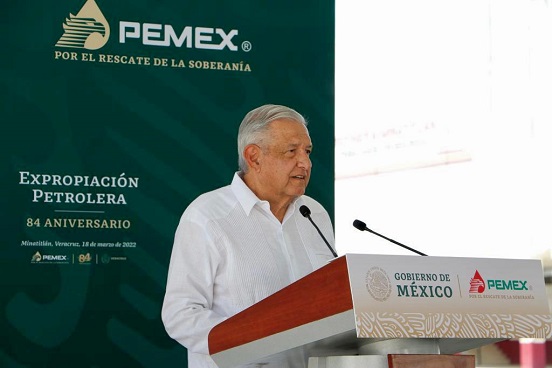 Durante la conmemoración del 84 aniversario de la Expropiación Petrolera, el presidente de México, Andrés Manuel López Obrador, dijo que la Comisión Federal de Electricidad (CFE) y Petróleos Mexicanos (Pemex) deben ser un ejemplo de administración honesta y con ello erradicar la corrupción que por años han enfrentado.