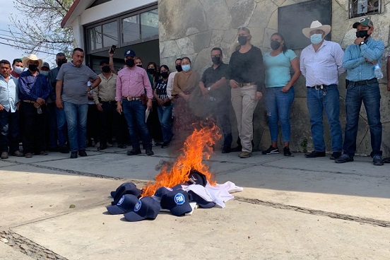 Al concluir el evento, los presidentes municipales quemaron camisetas, gorras y propaganda del partido como señal de renuncia.