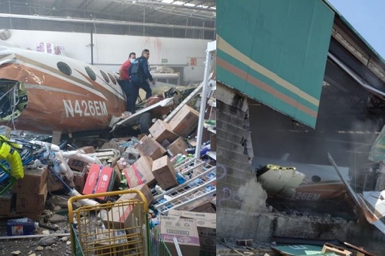 Una avioneta se desplomó y estrelló sobre una tienda Bodega Aurrerá en el municipio de Temixco, Morelos, la tarde de este lunes.
