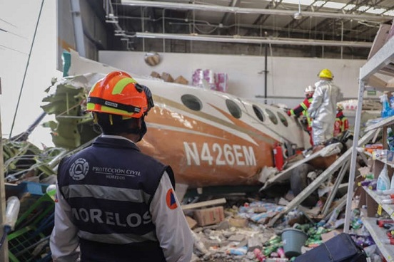 La avioneta se desplomó sobre un supermercado de la cadena Aurrera de la colonia Pueblo Viejo, en el municipio de Temixco, en el estado de Morelos.