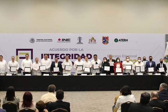 Para garantizar el desarrollo de elecciones con certeza, credibilidad y legitimidad, el Instituto Nacional Electoral (INE), el Tribunal Electoral del Poder Judicial de la Federación (TEPJF), el Tribunal Electoral del Estado de Tamaulipas (TRIELTAM), el Instituto Electoral de Tamaulipas (IETAM) y partidos políticos de esa entidad firmaron el Acuerdo por la Integridad Electoral del Proceso Electoral 2021-2022.