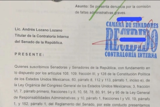 Senadores de oposición presentaron ante la Contraloría del Senado una denuncia en contra de 61 integrantes de la bancada de Morena por violar la Constitución al promover la revocación de mandato en plena veda electoral.