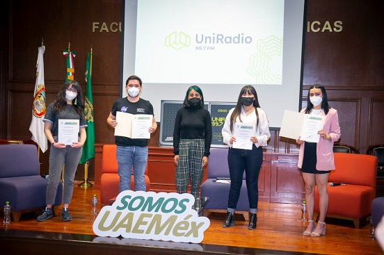 En el marco de las actividades de la Semana de la Radio 2022, por el 15 aniversario de UniRadio 99.7 de FM, el auditorio de la FCPyS de la UAEMéx fue sede de la Mesa “Jóvenes y Radio”, en la que participaron como expositores Acatzin Benítez Salgado, estudiante de Bioingeniería de la Facultad de Medicina; Brenda Vanessa Cortés Pérez, estudiante de Psicología de la Facultad de Ciencias de la Conducta e integrante de la Red de Divulgadores de la Ciencia y la Cultura “José Antonio Alzate”; Natalia Canales Becerra y Giovanna Álvarez Martínez, estudiantes de Comunicación en la FCPyS y directora general y coordinadora de producción en Híbrido Radio, respectivamente.