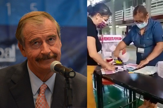 Ayer, durante la consulta de Revocación de Mandato, el expresidente Vicente Fox compartió un video en el que funcionarias de casilla rellenan una urna con boletas.