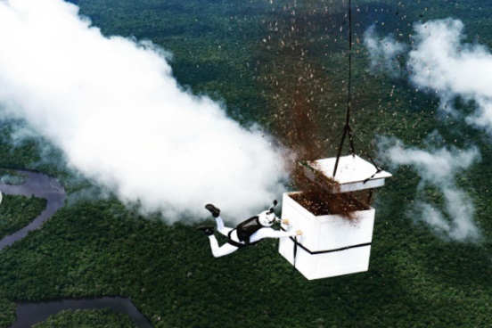 A través de las fotos que él mismo compartió se puede observar a Cani descender junto a una gran caja cuadrada, la cual es abierta en los aires para posteriormente observar la salida de las millones de semillas.