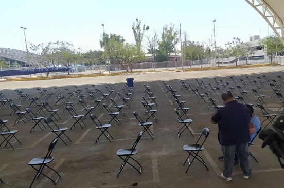 En el punto de vacunación ubicado en la clínica de medicina familiar del ISSSTE, apenas y se contaban dos personas entre unas 100 sillas, por lo que el personal de salud no tenía otra opción más que esperar.