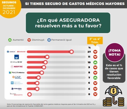 Respecto del tercer trimestre, Chubb y Grupo Nacional Provincial (GNP) aumentaron su resolución favorable; mientras que el resto de las aseguradoras la disminuyeron.