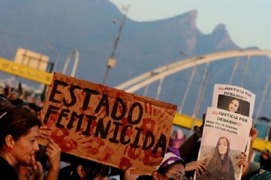 La protesta se da en el contexto del feminicidio de la joven Debanhi Escobar Bazaldúa, en el estado de Nuevo León, cuyo cuerpo fue encontrado en una cisterna del motel Nueva Castilla, en el municipio de Escobedo, a casi dos semanas de la desaparición de la joven de 18 años.