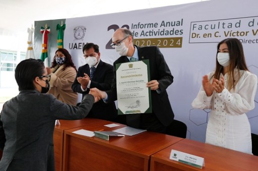 En el marco del segundo informe anual de actividades del director de la Facultad de Química, Víctor Varela Guerrero, el rector de la Autónoma mexiquense hizo entrega del Edificio Anexo de dos niveles, conformado por dos laboratorios, sala de cómputo, tres aulas, espacio de cubículos y sanitarios, así como la rehabilitación de la cancha de básquetbol.
